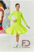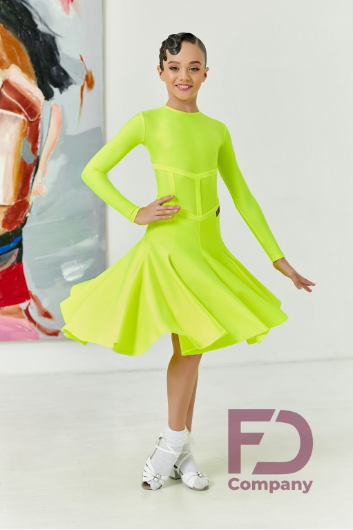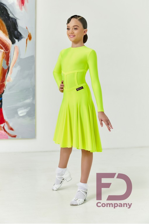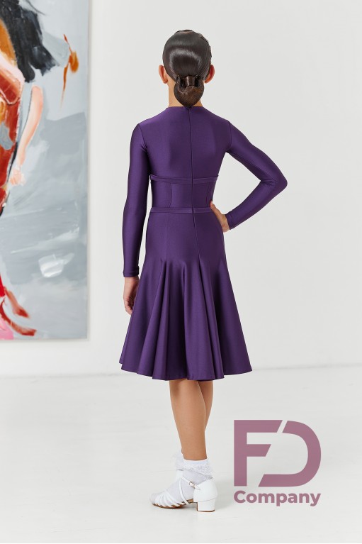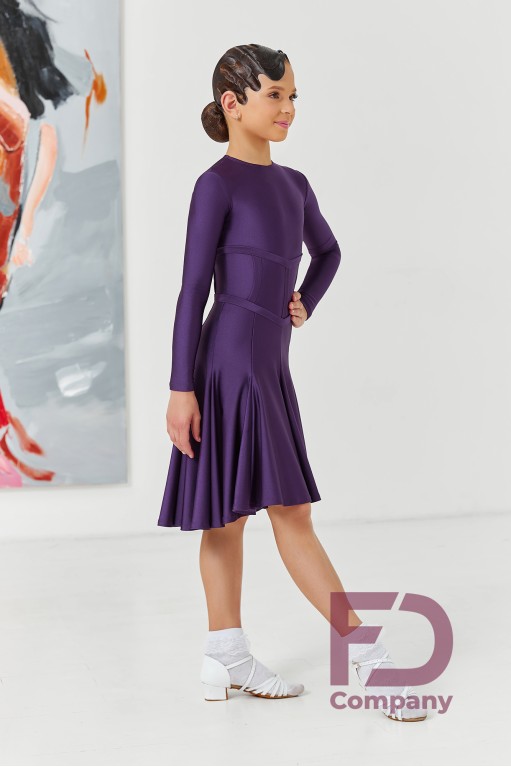 Product descriptionJuvenile Dress design based on a swimsuit, features long sleeves and panties with a button fastening. The back is finished with a "zipper" fastening. The neckline is round, and the front and back of the bodice are decorated with corset imitation. The skirt consists of 8 gores, flared from the hips, with an asymmetrical hem. The garment is made of biflex.