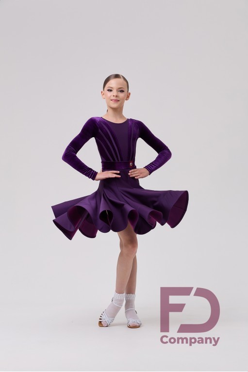The swimsuit is made of velor and supplex, with long sleeves and a V-shaped neckline on the back. Fastening at the bottom with buttons.