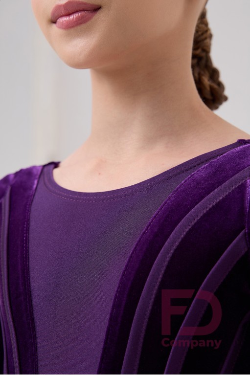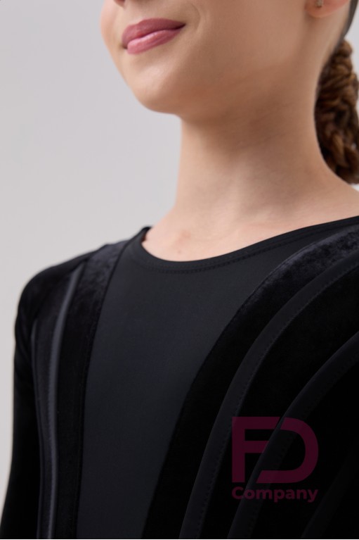 The swimsuit is made of velor and supplex, with long sleeves and V - shaped cutout at the back. Fastening at the bottom with buttons.