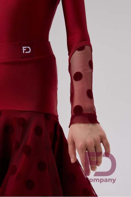 - Features: Standard two-layer skirt, sun cut, made of supplex and flock mesh large peas, with a stitched belt, with an elastic band 4 cm wide, The bottom of the skirt is treated with regiline 8 cm (size 36-44) and 5 cm (28-34 size). Latin skirt with an asymmetrical yoke, made of supplex, with a two-layer flounce, belt is stitched with an elastic band 4 cm wide, the bottom of the skirt is treated with regiline 5 cm.