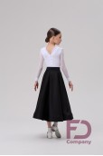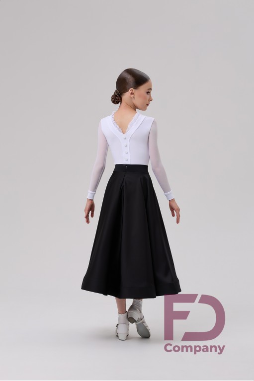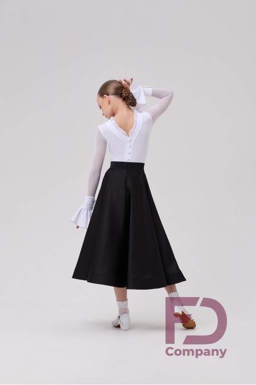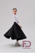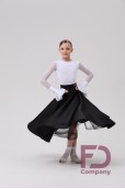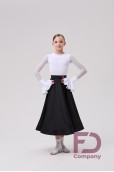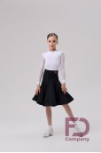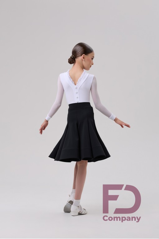 - Features: The Latin skirt is made of supplex, consists of 8 wedges with a stitched belt with an elastic band 4 cm wide, the bottom of the skirt is treated with regilin 8 cm (size 36-44) and 5 cm (size 28-34). The standard skirt is made of satin, sun cut, with a stitched belt, with an elastic band 4 cm wide, and a hidden zipper at the back, the bottom of the skirt is treated with regiline 5 cm wide.