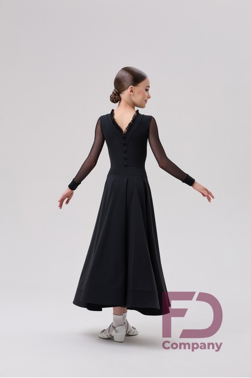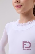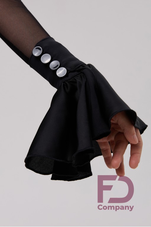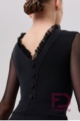 Swimsuit with long sleeves made of soft mesh, with a decorative placket on the back, decorated with buttons. The closure at the bottom is with buttons.