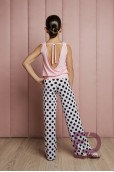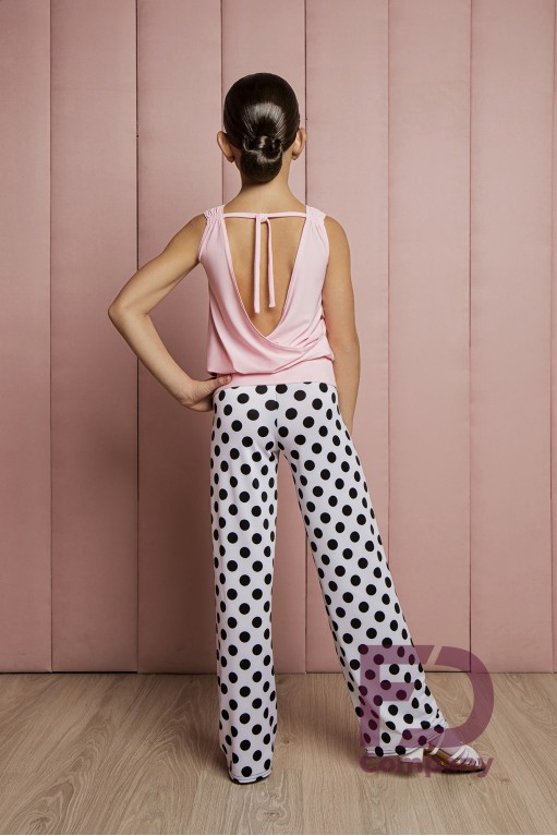 Product descriptionWomen's blouse, made of plain jersey oil, sleeveless, open back, wrap-around, with ties at the top. A cuff is sewn on the bottom of the product.
