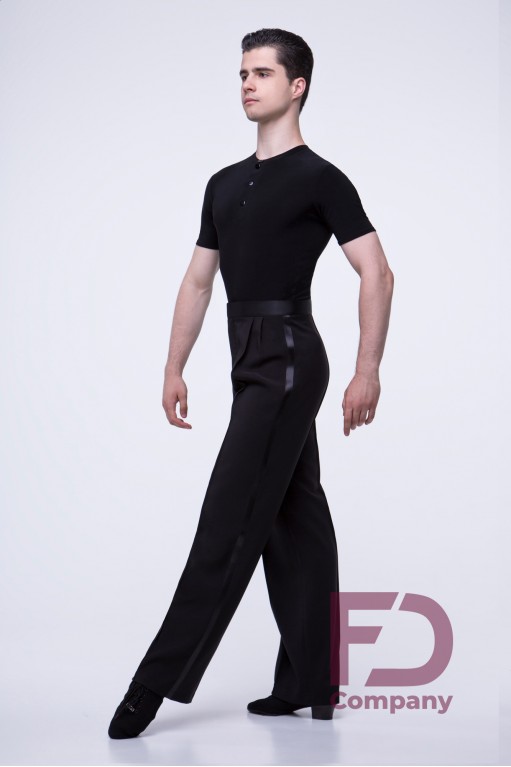 Product descriptionMen's trousers for Standard, made of gabardine fabric. In front and back of the trousers, arrows are stitched with a finishing stitching 0.1 cm. Satin stitched belt with hook closure, with satin stripes.