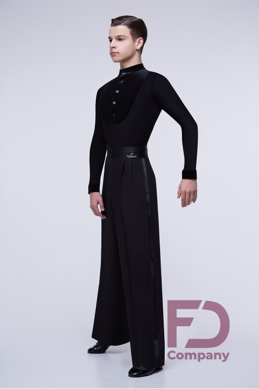 Product descriptionMen's trousers for Standard, with stripes along the side seams, tucks along the front of the trousers, a satin belt, no pockets. The product is made of gabardine fabric.