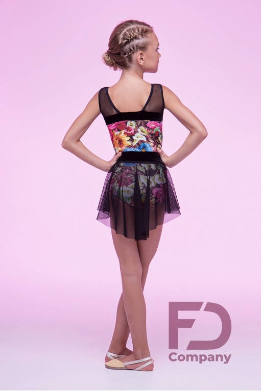 Product descriptionSkirt for choreography with an asymmetrical bottom, a stitched belt with an elastic band 4 cm wide (28-36 size), 5 cm (38-50 size). The product is made of stretch mesh and velor.