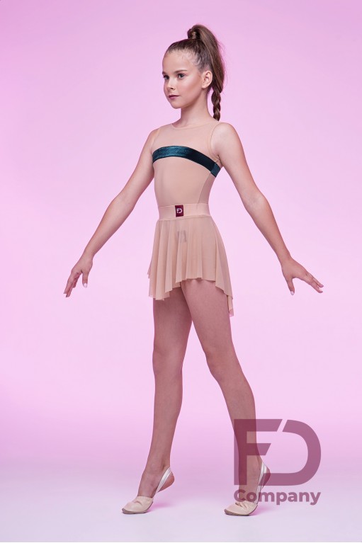 Product descriptionSkirt for choreography with an asymmetrical hem and a stitched belt with an elastic band 4 cm wide. The product is made of stretch mesh and oil jersey.