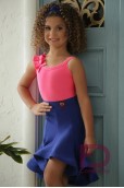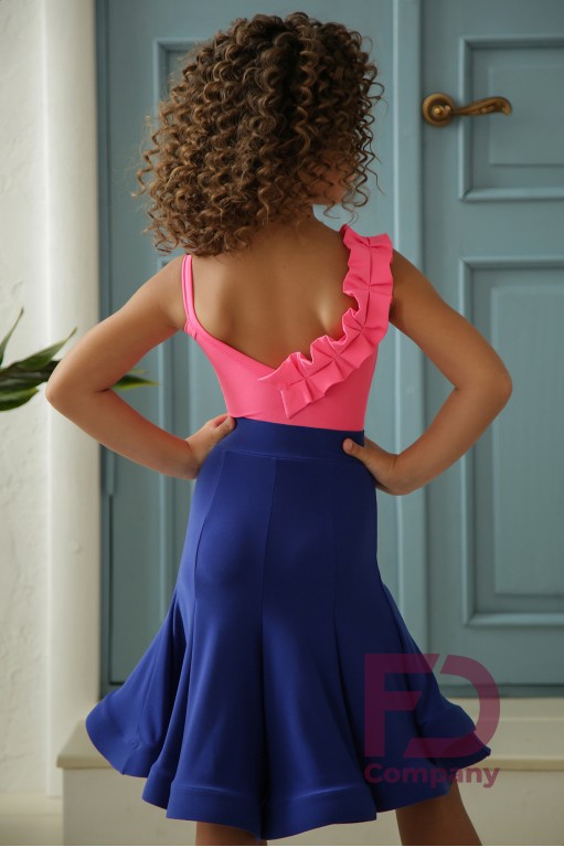 Product descriptionLatin skirt with a stitched belt made of oil jersey, with an elastic band 4-5 cm wide, made of eight year wedges. The bottom is asymmetrical, finished with a 5 cm wide regiline. The panties are sewn in. The product is made of oil jersey.