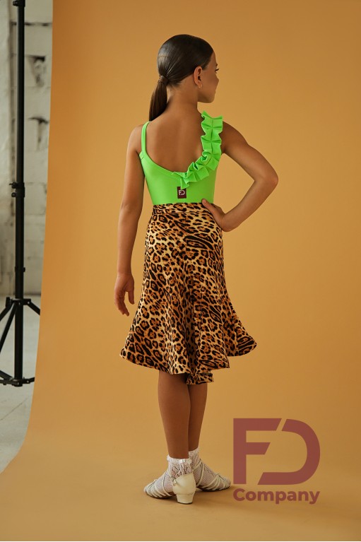 Product descriptionLatin skirt, cut of the year, from 5 gussets, shorter in front, longer back, at the waist is supplemented with a decorative belt, without panties. Made from printed leopard jersey. On the lower cut, the skirt is finished with regilin, which gives a light dynamism.