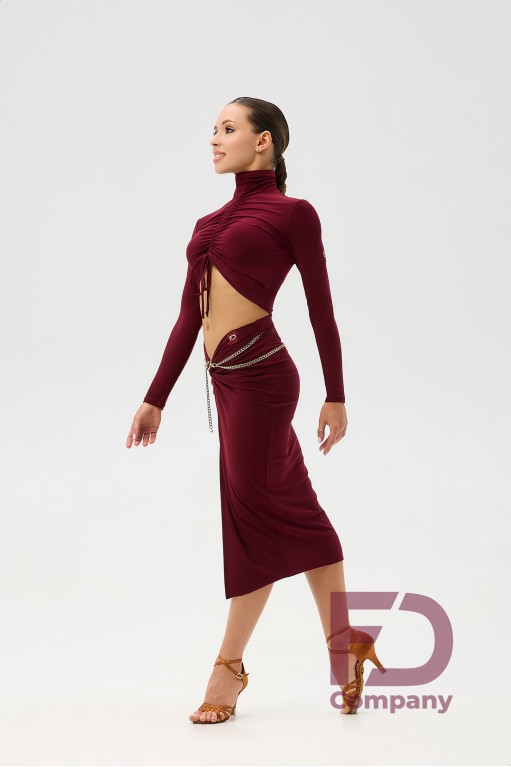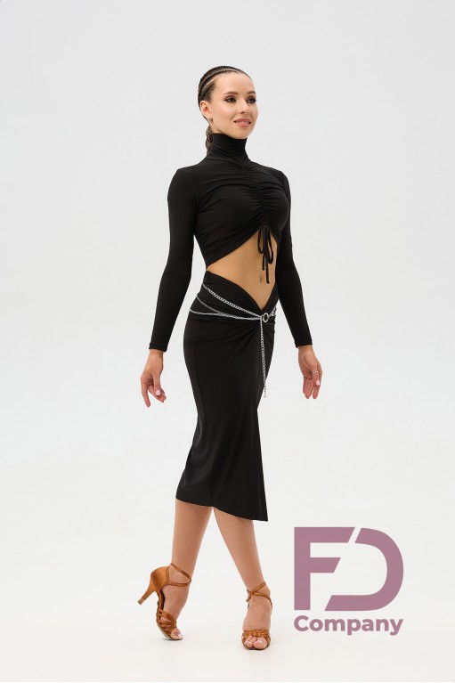 - Features: Skirt of a fitted silhouette, tapered at the bottom, with a high slit. The front of the skirt is decorated with original drapery. An elastic band 3 cm wide is sewn along the upper edge;