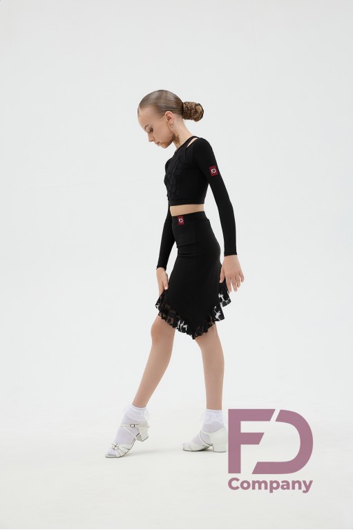 - Features: Fitted skirt, with draping on the side, with an asymmetrical hem to which a mesh frill is sewn.;