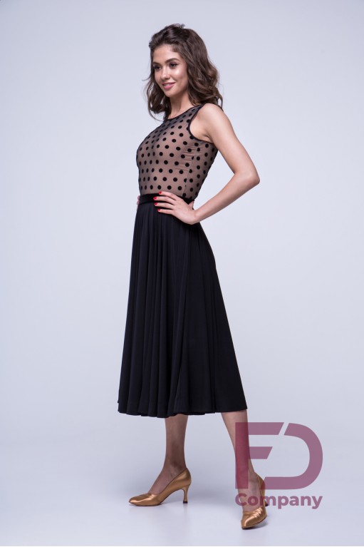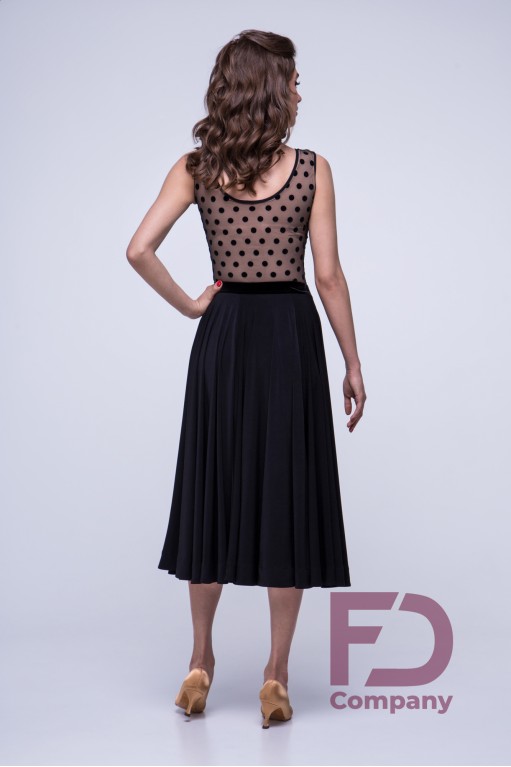 Product descriptionA skirt for a standard, with a stitched velor belt, with an elastic band 3 cm wide, cut - the sun, shortened midi length. The hem of the skirt is trimmed. The product is made of oil jersey.