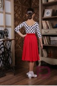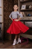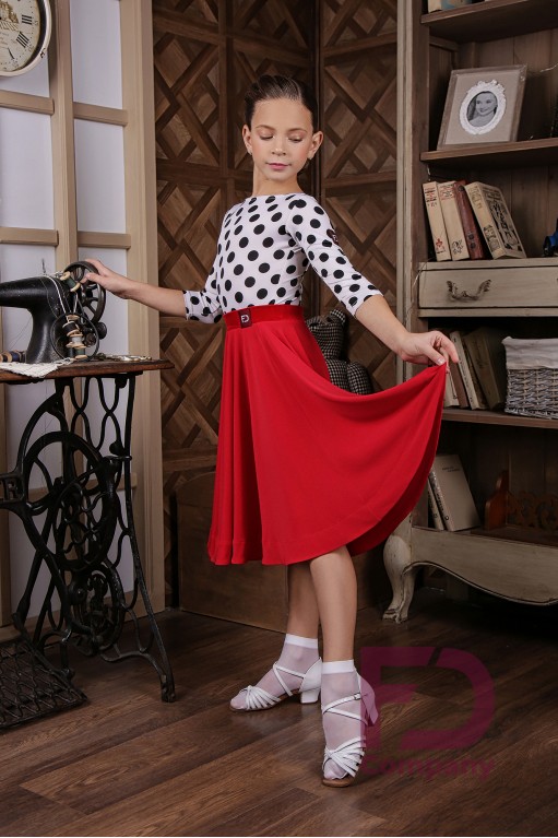 Product descriptionA skirt for a standard, with a stitched velor belt, with an elastic band 3 cm wide, cut - the sun, shortened midi length. The hem of the skirt is trimmed. The product is made of oil jersey.