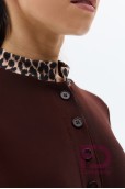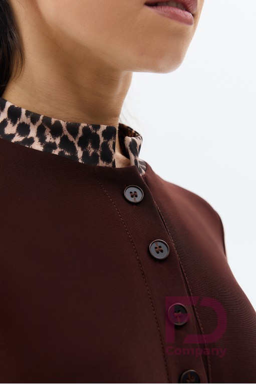 - Features: A set of swimsuit with shorts of a fitted silhouette. Button fastening in the center of the swimsuit, the bottom of the product with a snap fastener. The cuffs at the bottom of the product and the waistband are made of light leo print jersey, the waistband is on an elastic band 4 cm wide, the waistband is tied with three laces.;