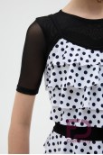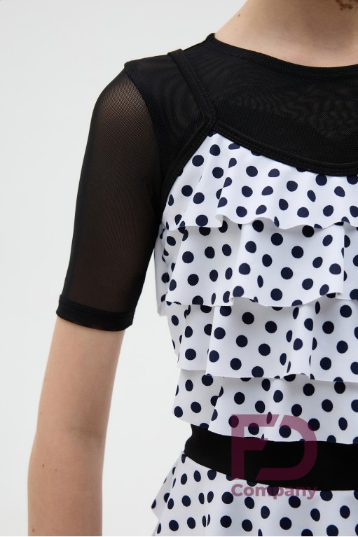 - Features: Leotard of a fitted silhouette, lining in the front in the form of a bodice. In sizes 34-48 - cups included. Loose-fitting top with flounces made of polka dot jersey, V-neck back, fixing straps.;