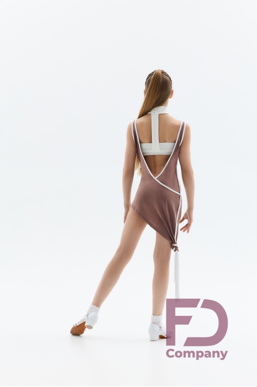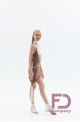 A loose-fitting tunic made of oil jersey, sleeveless. The edges of the tunic are trimmed with a piping made of finishing fabric, the bottom is tied in a knot with a fringe 20 and 30 cm long;