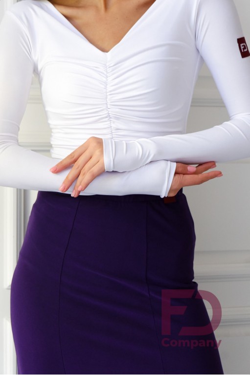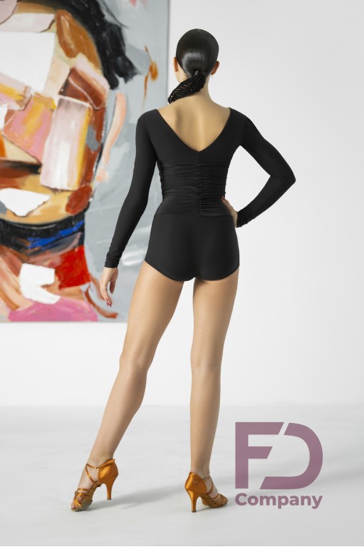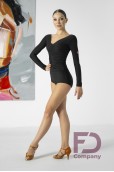 Product descriptionLeotard for women, with long sleeves, with a deep V-neck on the front and back. Vertical drapery on the front and back. The bodice is double, the panties are stitched with a fastener with buttons at the bottom. The product is made of oil jersey.
