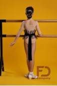 Product descriptionThe leotard is female, classic, with a fastener with buttons at the bottom, a three-quarter sleeve, a round neck. The product is made of oil jersey. The belt is not included.