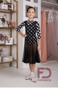 Product descriptionLeotard for women, with a three-quarter sleeve, a bateau neckline and an open back, with a button fastener at the bottom. The product is made of jersey with a pea print, an elastic band 0.5 cm is sewn at the neck.