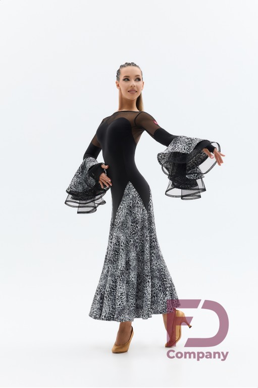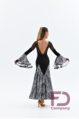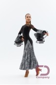 The set includes a close-fitting glove made of oil jersey to the middle of the palm with a slit for the finger, the length is above the elbow, in the middle there is a double frill made of mesh and silky suiting fabric, gray print, along the bottom of the frill there is a regilin.;
