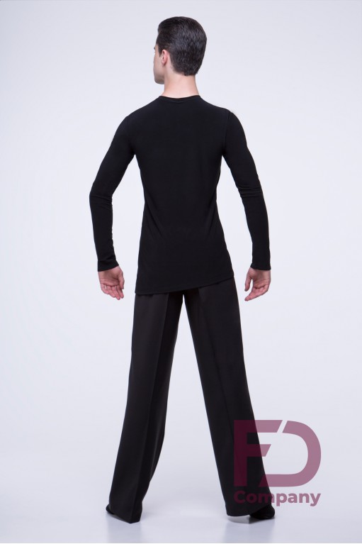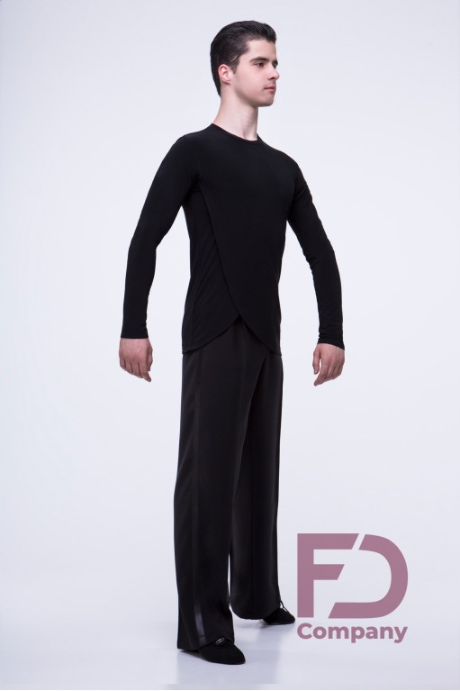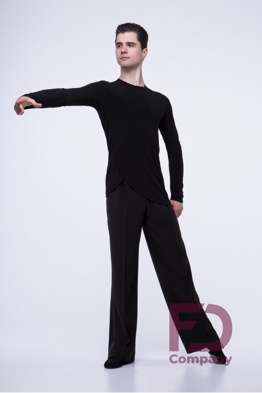Product descriptionMen's shirt for Latin American dances, made of oil jersey, long sleeve, round neck, finished with edging. The bottom of the product is asymmetric, with imitation of smell in front.