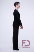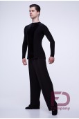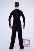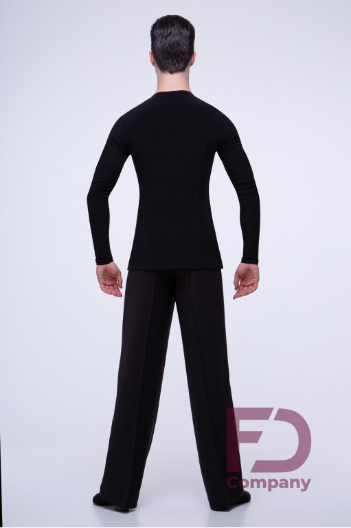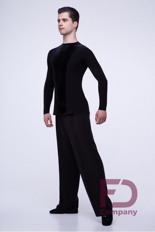 Product descriptionMen's shirt for Latin American dances, in a semi-adjacent silhouette, with cuts along the side seams, long sleeves, a round neck, without a collar. Back with raised seams. In the center of the front there is a velor insert with a wide stripe. The product is made of oil jersey.