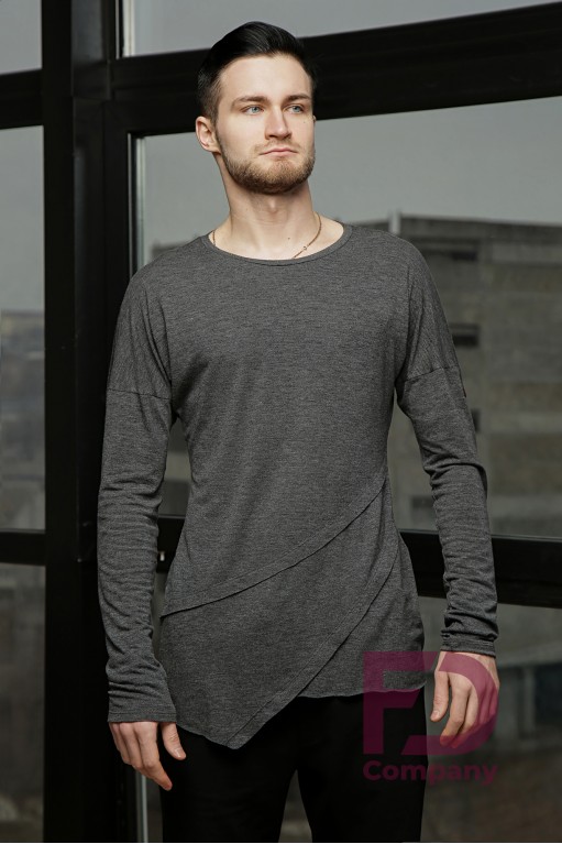 Product descriptionMen's shirt for Latin American dances, of a straight silhouette, lowered shoulder, long sleeves, o-shaped neckline with piping. The bottom of the product is asymmetric. The product is made of cotton jersey.