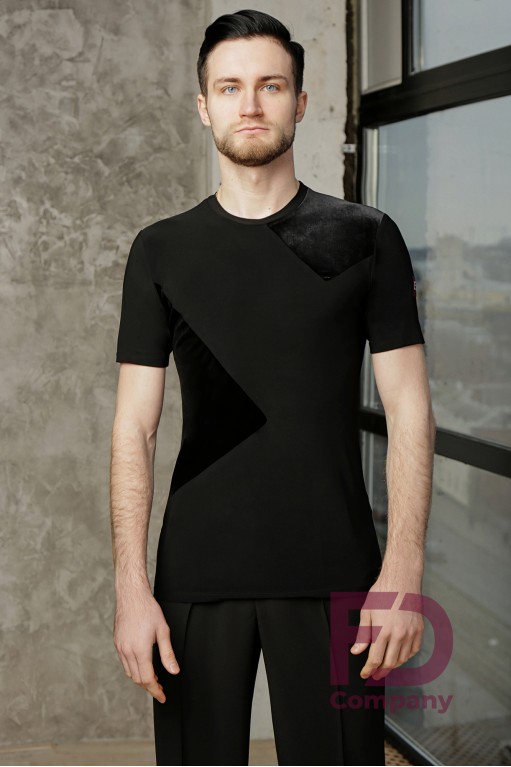 Product descriptionMen's shirt universal for Latin and Standard, with short sleeves and round neck with piping. The product is made of oil jersey with inserts of soft velor on the front.