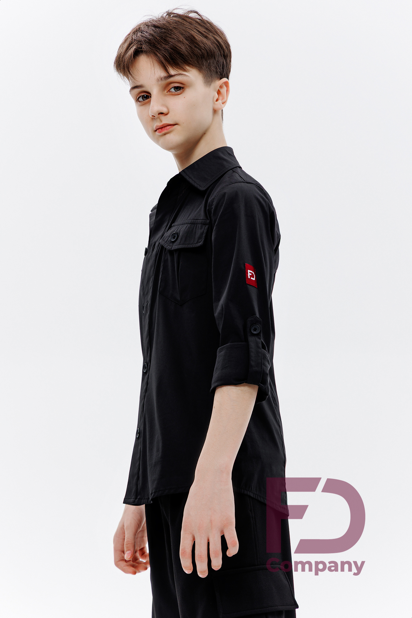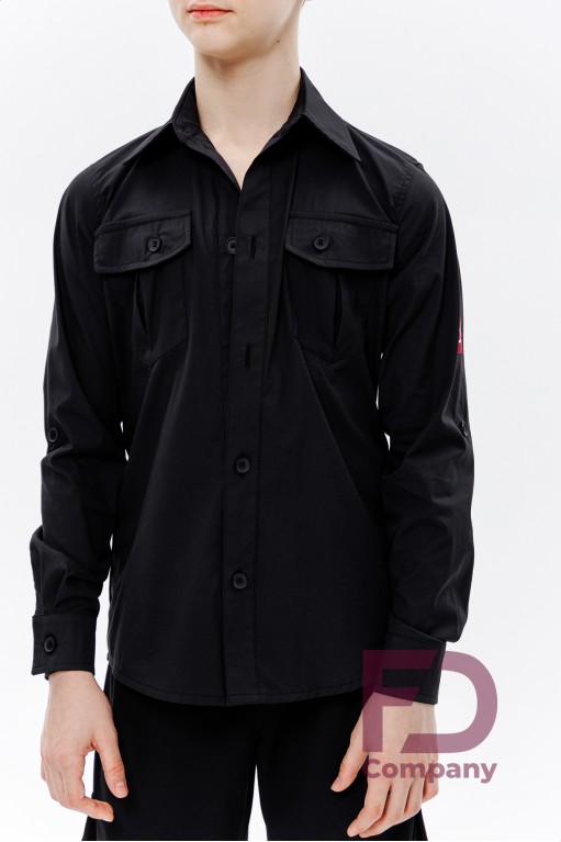 - Features: Fitted shirt with attached front plackets and two patch pockets with flaps, fastened with buttons. Back with two shaped seams and a cut-off double yoke. Turn-down collar with stand. Long sleeves with attached wide cuffs fastened with 2 buttons, and a tab for adjusting sleeve length. Shaped hem.;