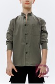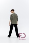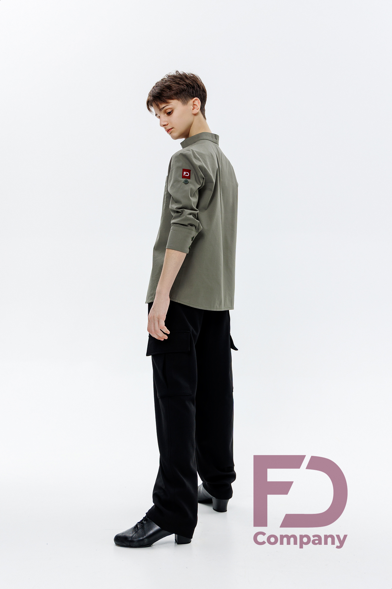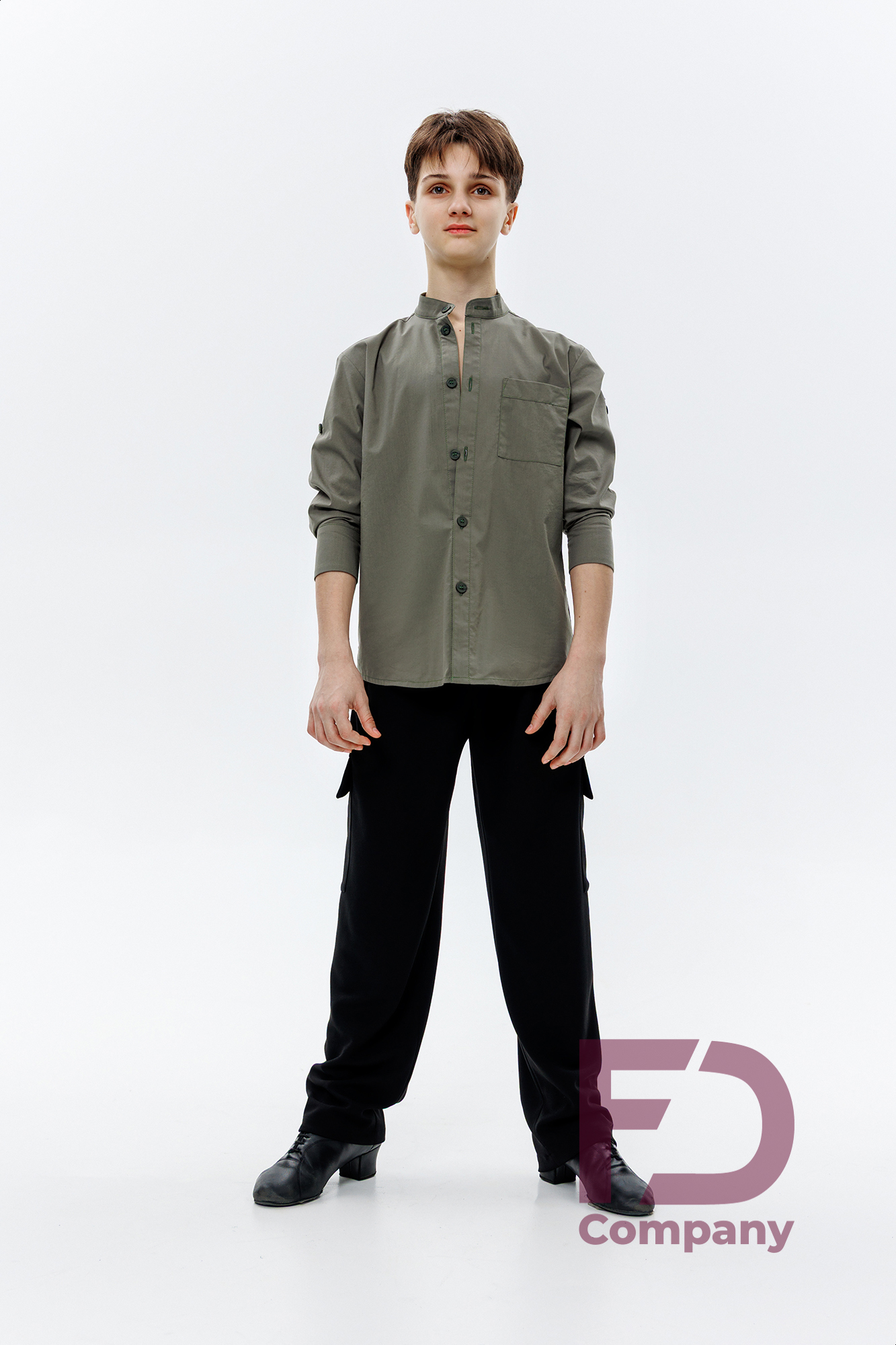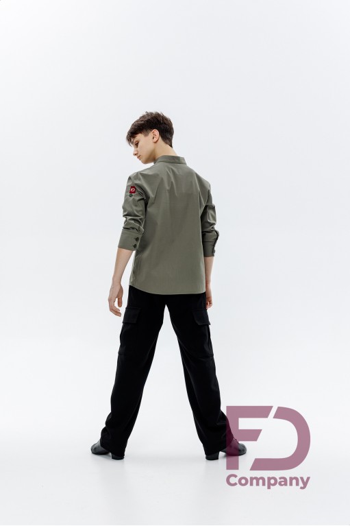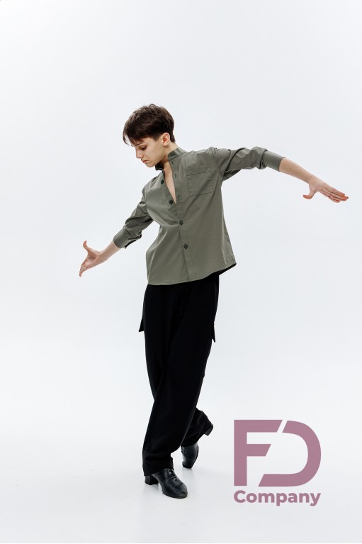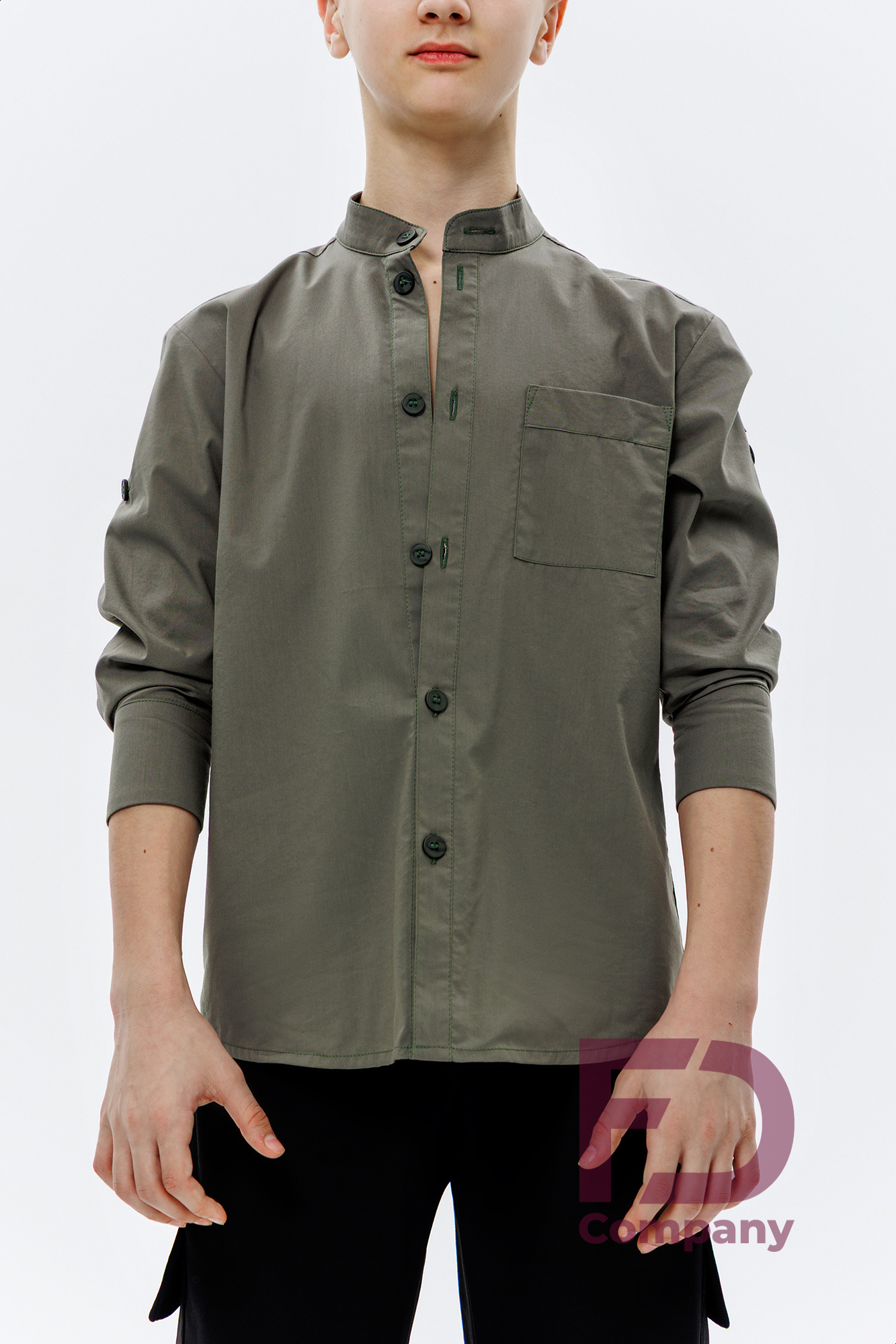 - Features: Shirt made of stretch poplin fabric, front panels with attached plackets and button fastening. Chest pocket on the left front panel. Set-in collar with stand. 7/8-length single-seam sleeves with attached wide cuffs fastened with 2 buttons, and a sleeve tab for adjusting sleeve length.;