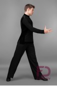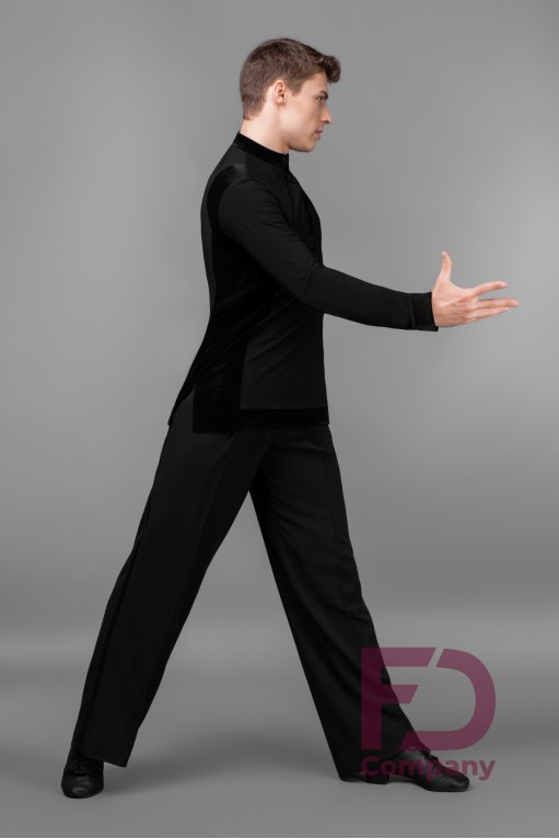 Product descriptionMen's shirt for Latin American dances, in a semi-adjacent silhouette, long sleeves with a cuff, a stand-up collar, a glazing strap with buttons, slits on the sides. The product is made in a combination of two fabrics: oil jersey and soft velor.