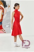 Описание товараБейсик на основе купальника, без рукавов, с воротником — стойка, по спинке обработана застежка "молния". Трусики на застежке на кнопки. Лиф по переду и спинке украшен V-образной вставкой из сетки-полоски. Юбка из 8 клиньев, по переду короче, по спинке длиннее. В размерах 40, 42 и 44 в комплекте чашечки. Изделие выполнено из бифлекса.