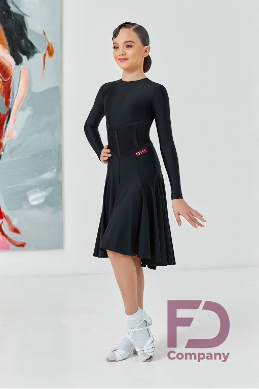Описание товараБейсик на основе купальника с длинным рукавом, трусики на застежке на кнопки. По спинке обработана застежка "молния". Вырез горловины круглый, по переду и спинке лифа отделка - имитация корсета с крупной сеткой. Юбка из 8 клиньев, клеш от бедра с ассиметричным низом. Изделие выполнено из бифлекса.
