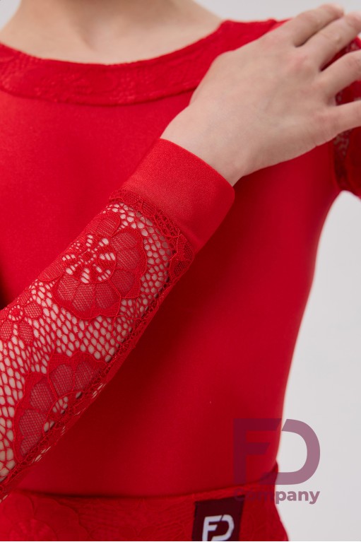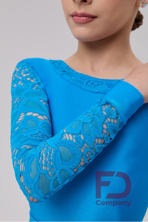 Купальник с длинным рукавом из гипюра, V - образной горловиной по спинке. Застежка внизу на кнопки.