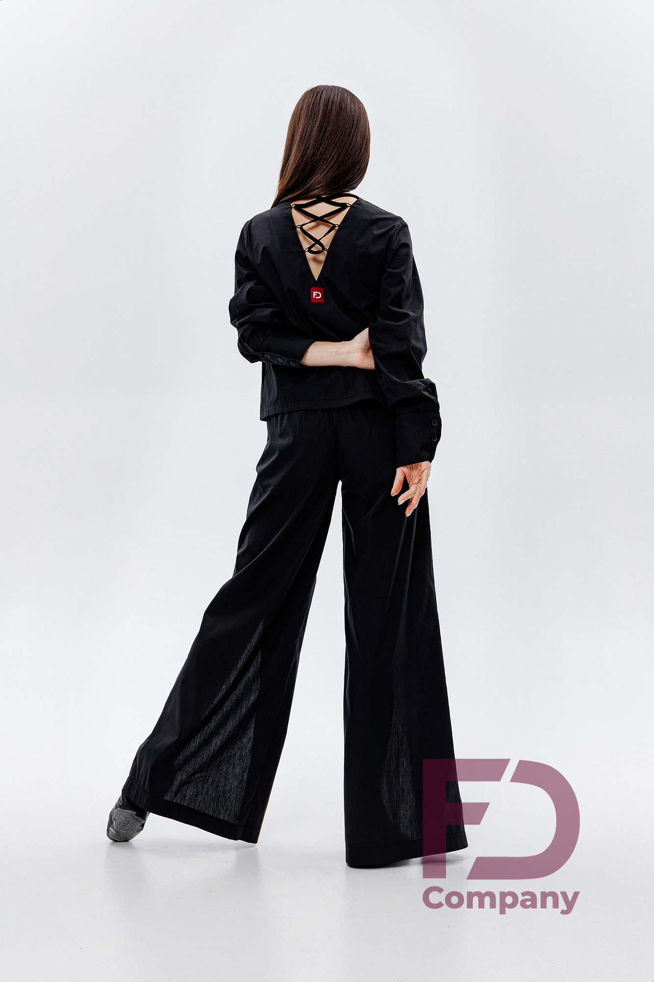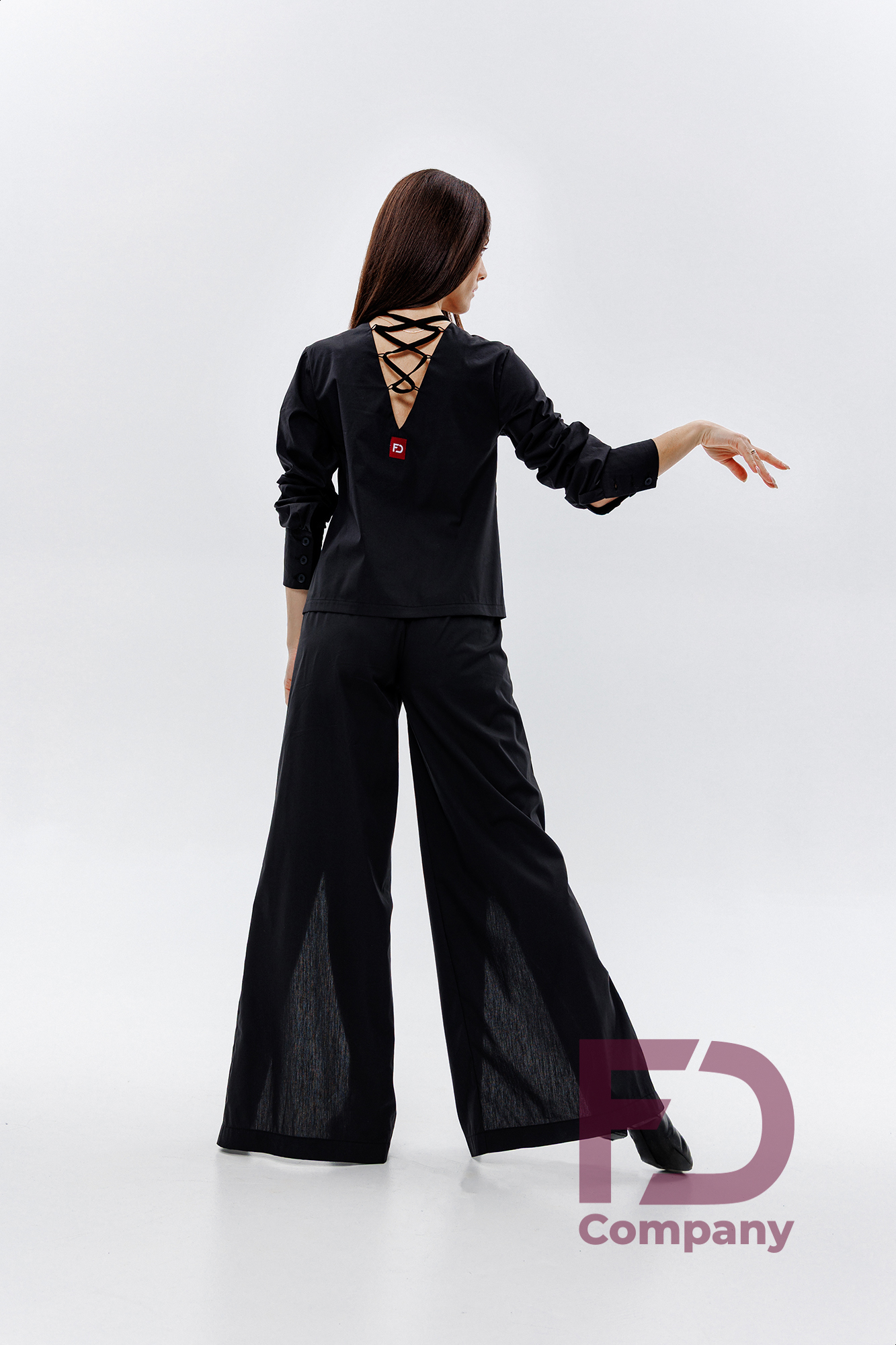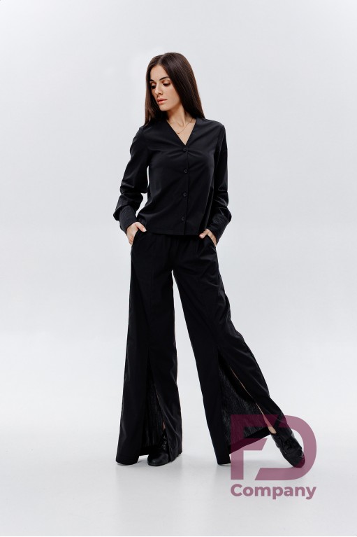 - Особенности: Блуза свободного кроя с V-образной горловиной спереди, застегивающейся на 4 пуговицы. Спинка с V-образным вырезом горловины, украшенным декоративной шнуровкой.;