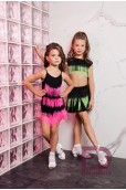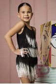 Описание товараБлуза женская, выполнена на основе майки, с открытой спиной. Изделие из трикотажа масло, перед и спинка украшены бахромой с переходом из черного в цветную, длиной 20 см.