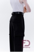 - Особенности: Брюки формы "банан" с притачным поясом и шлевками, застегивающимся на молнию, петлю и пуговицу на выступающем конце пояса. Передняя часть с мягкими складками и боковыми карманами в швах. Накладные объемные карманы с клапаном по бокам. Задняя часть с талиевыми вытачками и клапаном.;