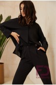 Описание товараБрюки женские, по передним половинкам имеются стрелки. Карманы и задние половинки брюк по низу украшены велюром. Передние половинки короче чем задние. Изделие выполнено из креп дайвинга.