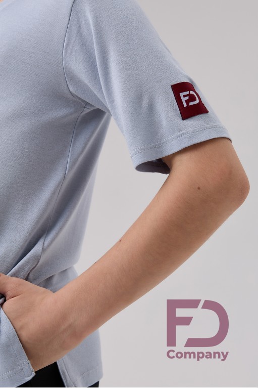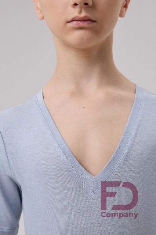 - Особенности: Футболка с глубоким V-образным вырезом. Горловина обработана бейкой. По боковым швам разрезы обработанные киперной лентой.;