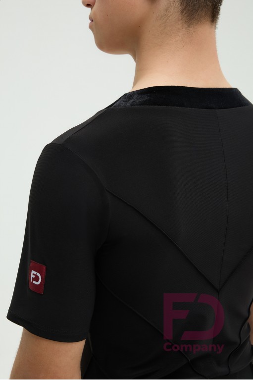 - Особенности: Футболка имеет отстрочку по передней и задней полочке. Воротник обработан велюром.;