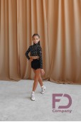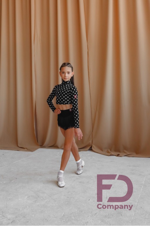 Описание товараГольф тренировочный для латины с длинным рукавом, высоким воротником - стойка и обтачкой по низу изделия с резинкой шириной 2-3 см. Изделие выполнено из трикотажа принт горох.