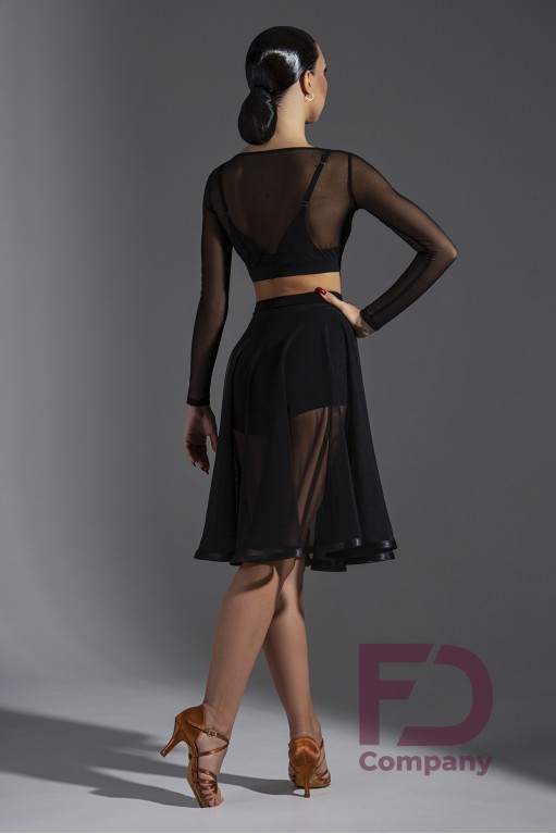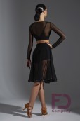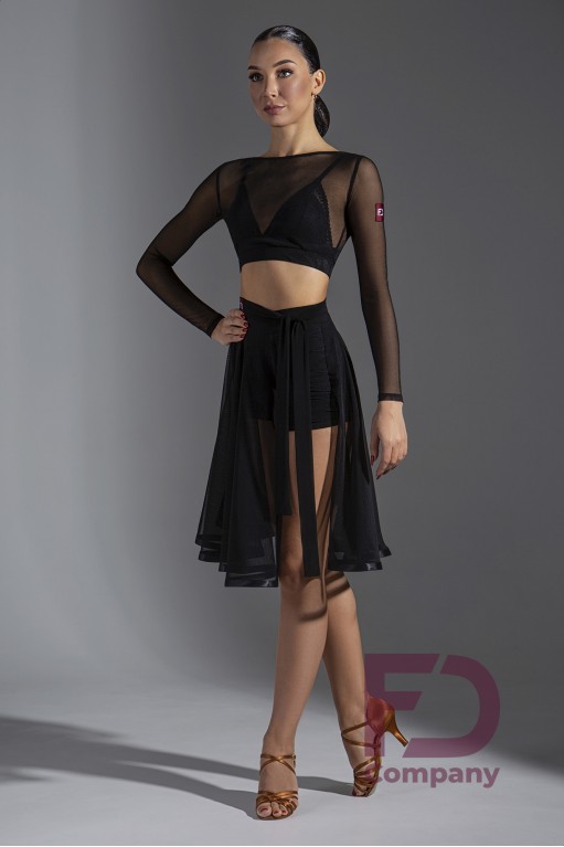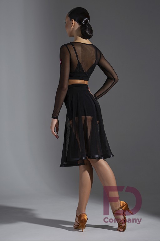 Описание товараЮбка кроя солнце для латинских танцев с шортиками. Разрез юбки дополнен декоративной драпировкой. Шорты и пояс выполнены из трикотажа масло. Юбка и драпировка из сетки стрейч. Нижний срез юбки обработан атласной косой бейкой шириной 1.5 см.