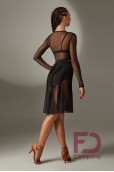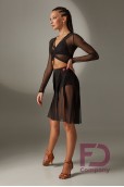 Описание товараЮбка для латины из сетки, из 8 клиньев с разрезами, украшена бахромой, низ асимметричный. Изделие с притачным поясом, с резинкой шириной 4 см., с трусиками, выполнено из трикотажа масло и сетки стрейч.
