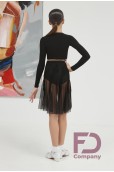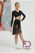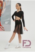 Описание товараЮбка для латины из сетки, из 8 клиньев с разрезами, украшена бахромой, низ асимметричный. Изделие с притачным поясом, с резинкой шириной 4 см., с трусиками, выполнено из трикотажа масло и сетки стрейч.