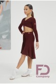 Описание товараЮбка для латины, крой годе, из 5 клиньев, перед короче, спинка длиннее, по талии дополнена декоративным поясом, без трусиков. Выполнена из трикотажа масло.