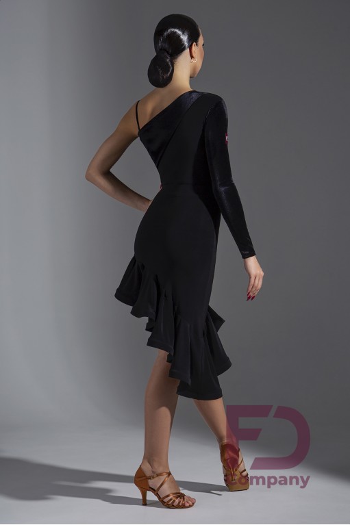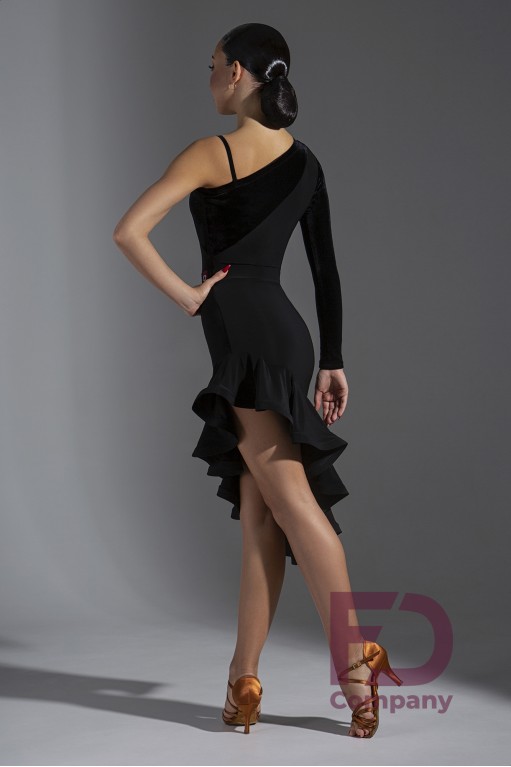 Описание товараЮбка для латины с трусиками и притачным поясом с резинкой шириной 4 см. Изделие имеет прямой силуэт с ассиметричным низом и притачным воланом. Низ волана обработан регилином. Юбка выполнена из трикотажа масло.