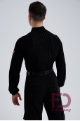- Особенности: Комбидресс из стрейч трикотажа и велюровой сетки полоски. Воротник — стойка, V-образный вырез горловины, без центральной застёжки. Рукав длинный, расширенный к низу, с притачным манжетом, без застежки.;