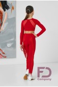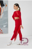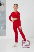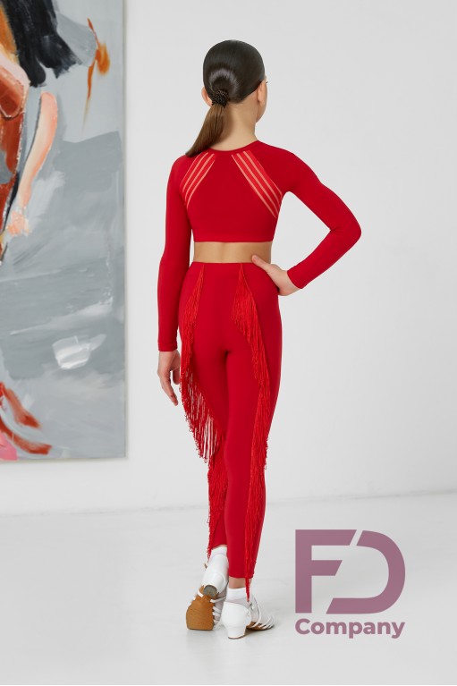 Описание товараЛосины укороченные для латинской программы, на поясе с резинкой. По переду объемная стрелка, по задним половинкам в вертикальный рельеф вшита бахрома. Изделие выполнено из трикотажа масло.