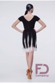 Описание товараПлатье для латины прилегающего силуэта, длиной выше колена, коротким рукавом, v - образным вырезом горловины по спинке. Трусики в комплекте. Изделие выполнено из трикотажа масло, по низу изделия и спинке пришита бахрома "черно белый градиент" длиной 20 см.