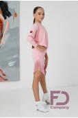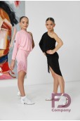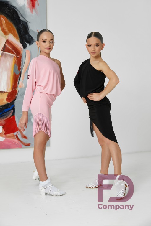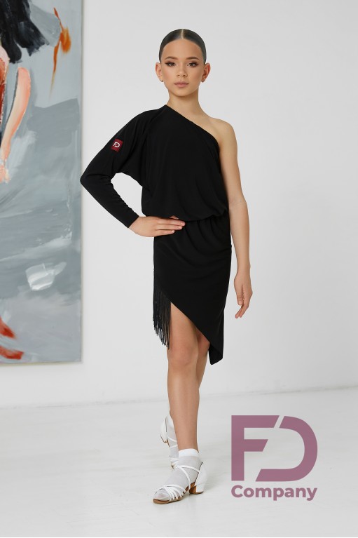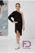 Описание товараПлатье для латины, на одно плечо, рукав летучая мышь, юбка косая, низ обработан бахромой 15 см. - в цветном варианте бахрома с петлей, в черном варианте бахрома обрезная. Платье на основе купальника, с застежкой на трусиках на кнопки. Изделие выполнено из трикотажа масло.